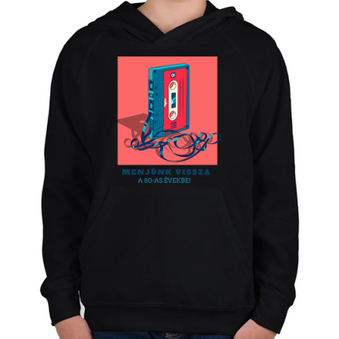 1 kép PRINTFASHION 80S - Gyerek kapucnis pulóver - Fekete