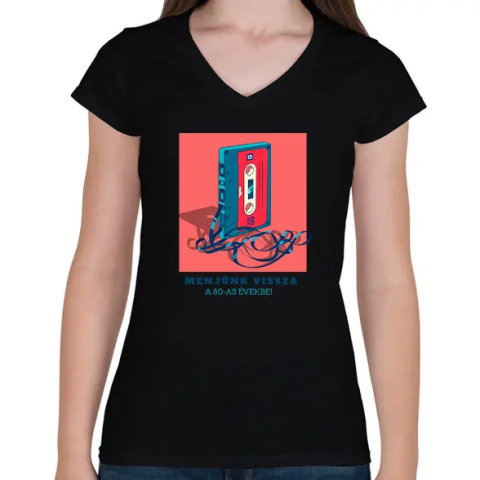 1 kép PRINTFASHION 80S - Női V-nyakú póló - Fekete