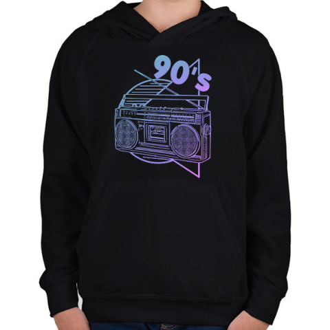 1 kép PRINTFASHION 90's - Gyerek kapucnis pulóver - Fekete