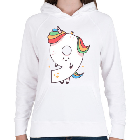 1 kép PRINTFASHION 9 éves unikornis - Női kapucnis pulóver - Fehér