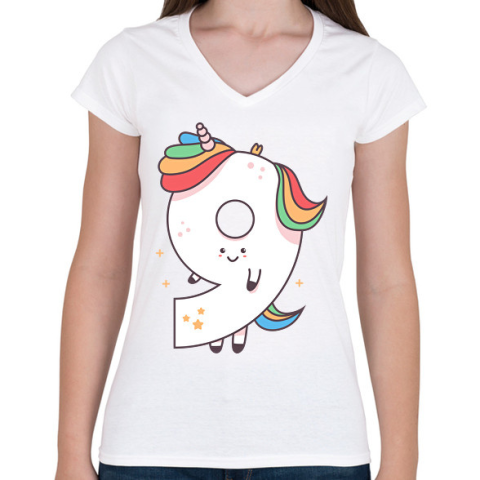 1 kép PRINTFASHION 9 éves unikornis - Női V-nyakú póló - Fehér