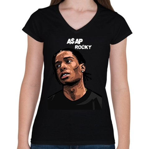 1 kép PRINTFASHION A$AP ROCKY - Női V-nyakú póló - Fekete