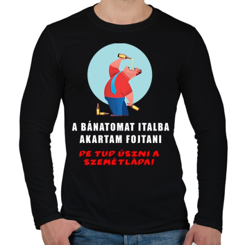 1 kép PRINTFASHION a bánatomat italba akartam fojtani - Férfi hosszú ujjú póló - Fekete