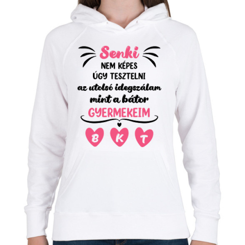 1 kép PRINTFASHION A bátor gyerekeim - Kezdőbetűkkel - Női kapucnis pulóver - Fehér