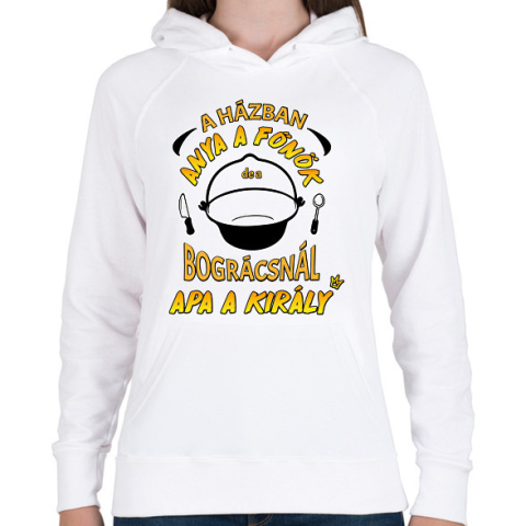 1 kép PRINTFASHION A bográcsnál apa a király - Női kapucnis pulóver - Fehér