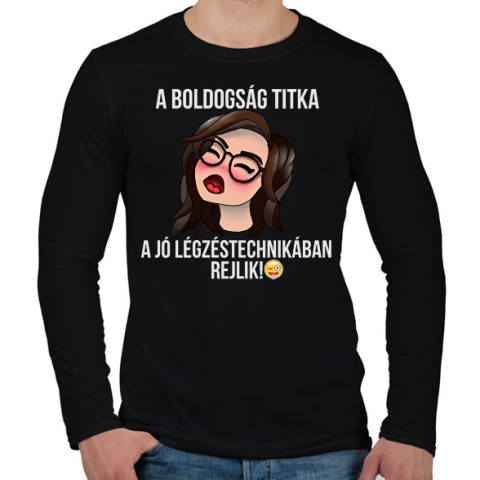 1 kép PRINTFASHION a boldogság titka - Férfi hosszú ujjú póló - Fekete