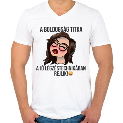 1 kép PRINTFASHION a boldogság titka - Férfi V-nyakú póló - Fehér