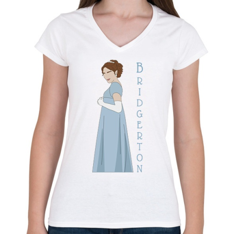 1 kép PRINTFASHION A Bridgerton család - Daphne - Női V-nyakú póló - Fehér