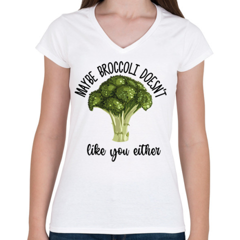 1 kép PRINTFASHION A brokkoli se szeret téged - Női V-nyakú póló - Fehér