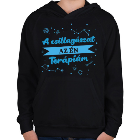 1 kép PRINTFASHION A csillagászat az én terápiám - Gyerek kapucnis pulóver - Fekete