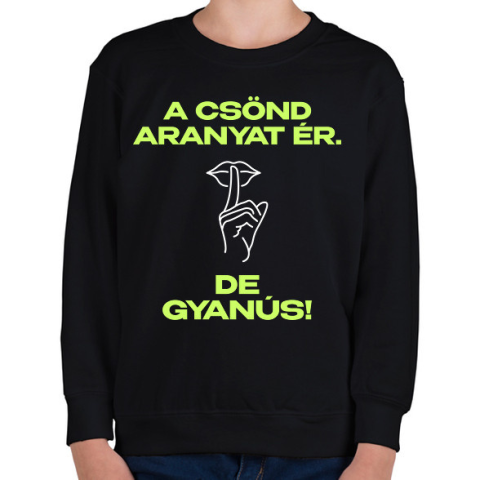1 kép PRINTFASHION A csönd aranyat ér - Gyerek pulóver - Fekete