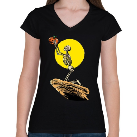 1 kép PRINTFASHION A csontok királya - Női V-nyakú póló - Fekete