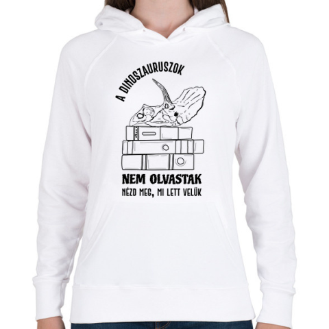 1 kép PRINTFASHION A dinoszauruszok nem olvastak - Női kapucnis pulóver - Fehér