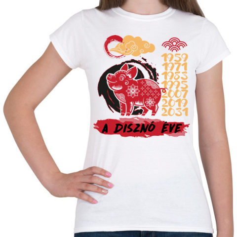 1 kép PRINTFASHION A disznó éve - Női póló - Fehér