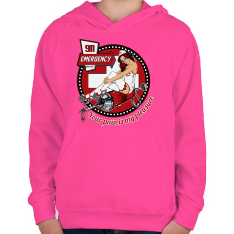 1 kép PRINTFASHION A fájdalom öröme - Gyerek kapucnis pulóver - Fukszia