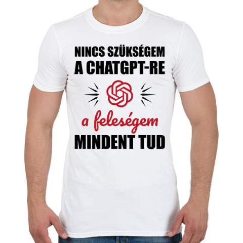 1 kép PRINTFASHION A feleségem mindent tud - Férfi póló - Fehér