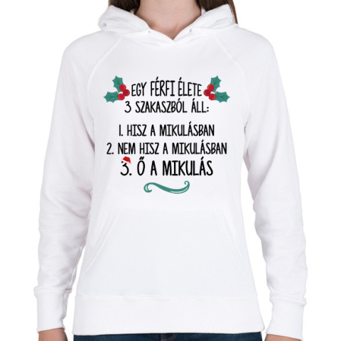 1 kép PRINTFASHION A férfi élete - Mikulás - Női kapucnis pulóver - Fehér