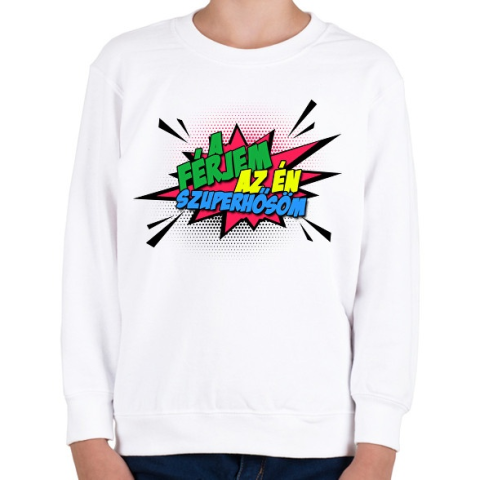 1 kép PRINTFASHION A férjem az én szuperhősöm! - Gyerek pulóver - Fehér