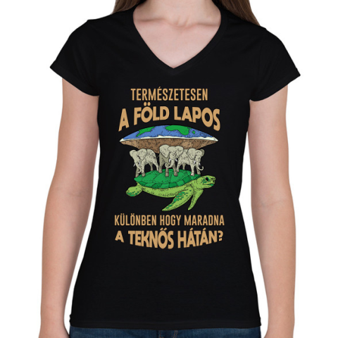 1 kép PRINTFASHION A Föld lapos - Női V-nyakú póló - Fekete