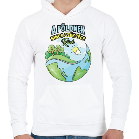 1 kép PRINTFASHION A földnek nincs szüksége ránk - Férfi kapucnis pulóver - Fehér