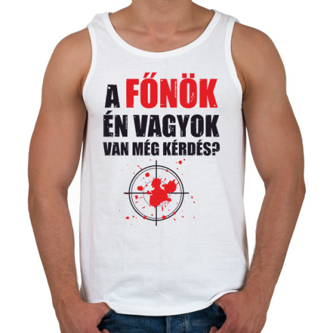 1 kép PRINTFASHION A főnök én vagyok van még kérdés? - Férfi atléta - Fehér