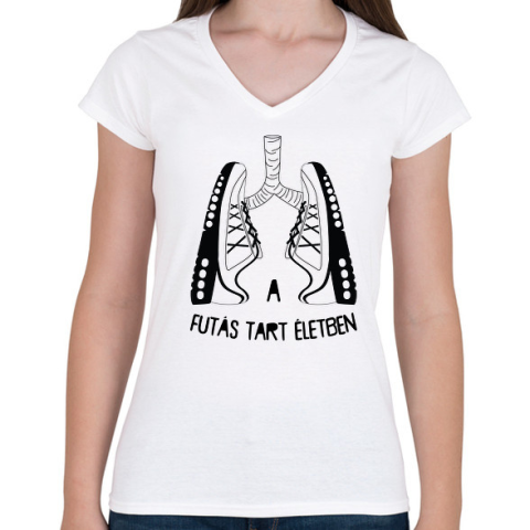 1 kép PRINTFASHION A futás tart életben - Női V-nyakú póló - Fehér