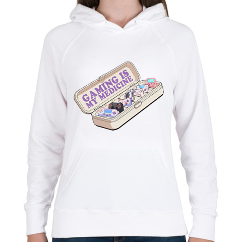 1 kép PRINTFASHION A gaming a gyógyszerem - Női kapucnis pulóver - Fehér
