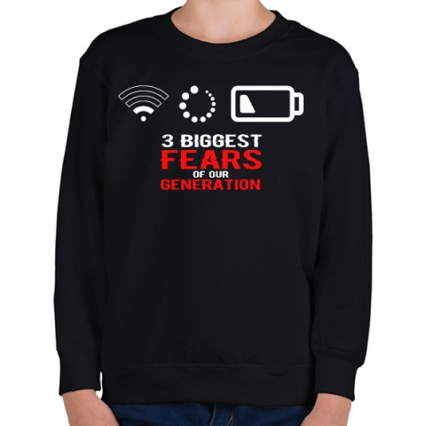 1 kép PRINTFASHION A generációnk legnagyobb félelmei - Gyerek pulóver - Fekete