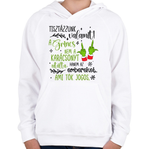1 kép PRINTFASHION A Grincs az embereket utálta - Gyerek kapucnis pulóver - Fehér