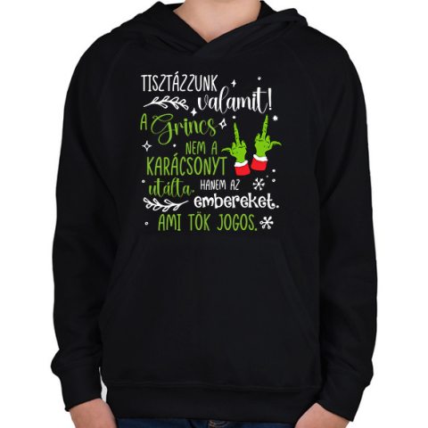 1 kép PRINTFASHION A Grincs az embereket utálta - Gyerek kapucnis pulóver - Fekete