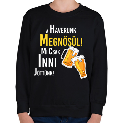1 kép PRINTFASHION A haverunk megnősül mi csak inni jöttünk - Gyerek pulóver - Fekete