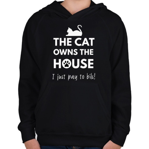 1 kép PRINTFASHION A ház a macskáé - Gyerek kapucnis pulóver - Fekete
