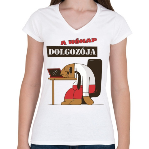 1 kép PRINTFASHION A hónap dolgozója - lajhár - Női V-nyakú póló - Fehér