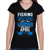 1 kép PRINTFASHION A horgász legendák áprilisban születtek - Női V-nyakú póló - Fekete