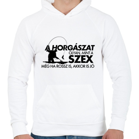 1 kép PRINTFASHION A horgászat olyan, mint a szex - Férfi kapucnis pulóver - Fehér