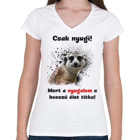 1 kép PRINTFASHION A hosszú élet titka - Női V-nyakú póló - Fehér