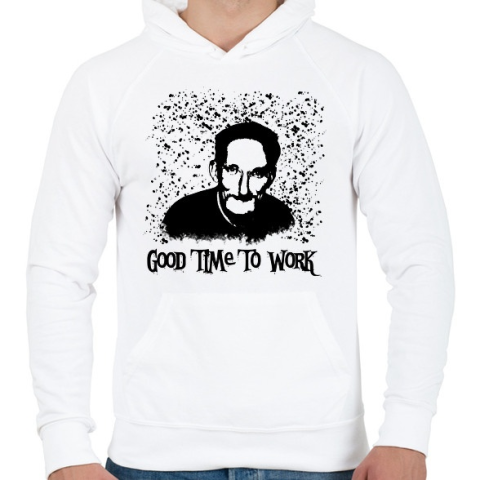 1 kép PRINTFASHION a jó munkához idő kell - Férfi kapucnis pulóver - Fehér