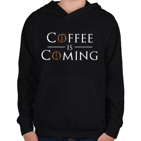 1 kép PRINTFASHION A kávé közeleg - Gyerek kapucnis pulóver - Fekete