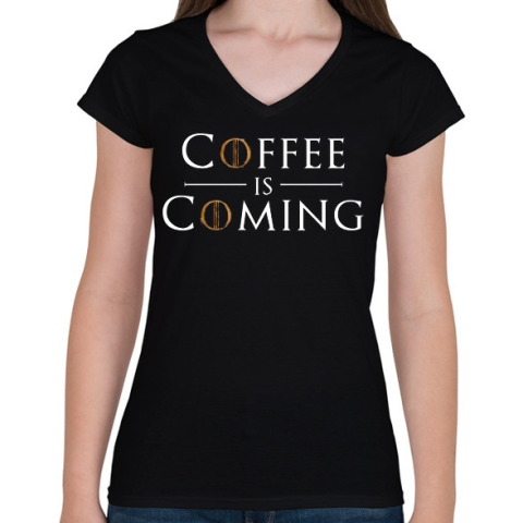 1 kép PRINTFASHION A kávé közeleg - Női V-nyakú póló - Fekete