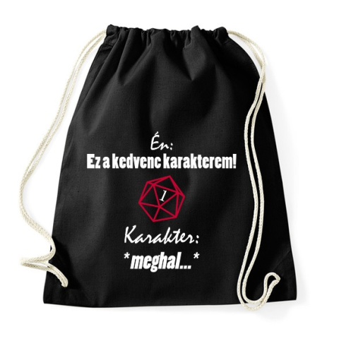 1 kép PRINTFASHION A kedvenc karakterem mindig meghal. - Sportzsák, Tornazsák - Fekete