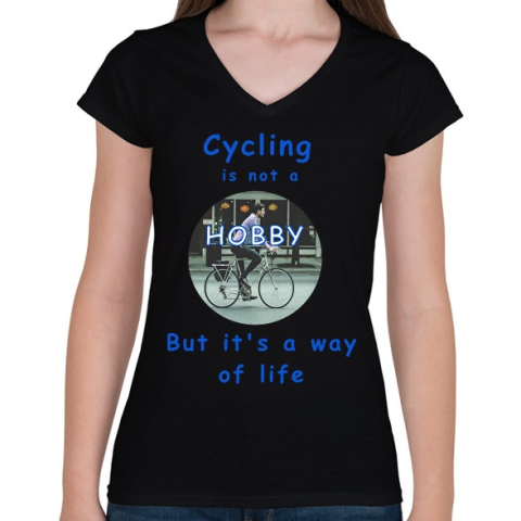 1 kép PRINTFASHION a kerékpározás nem hobby - Női V-nyakú póló - Fekete