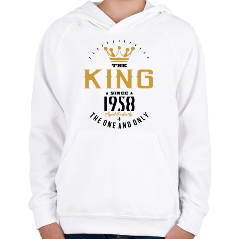 1 kép PRINTFASHION A király 1958-ban született - Gyerek kapucnis pulóver - Fehér