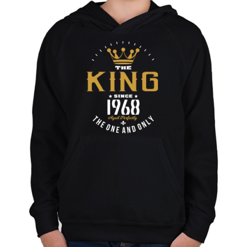 1 kép PRINTFASHION A király 1968-ban született - Gyerek kapucnis pulóver - Fekete