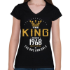 1 kép PRINTFASHION A király 1968-ban született - Női V-nyakú póló - Fekete
