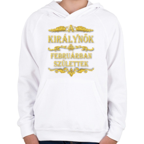 1 kép PRINTFASHION A királynők februárban születtek - Gyerek kapucnis pulóver - Fehér