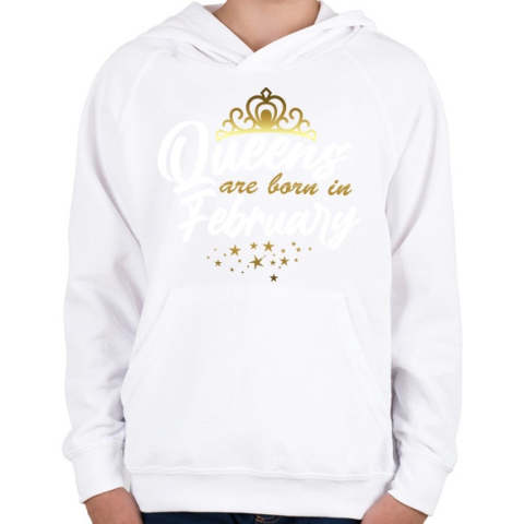 1 kép PRINTFASHION A királynők februárban születtek - Gyerek kapucnis pulóver - Fehér