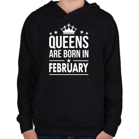 1 kép PRINTFASHION A királynők februárban születtek - Gyerek kapucnis pulóver - Fekete