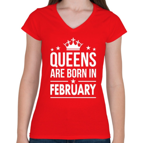 1 kép PRINTFASHION A királynők februárban születtek - Női V-nyakú póló - Piros