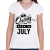 1 kép PRINTFASHION A királynők júliusban születnek - Női V-nyakú póló - Fehér