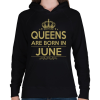 1 kép PRINTFASHION A királynők júniusban születnek - Női kapucnis pulóver - Fekete